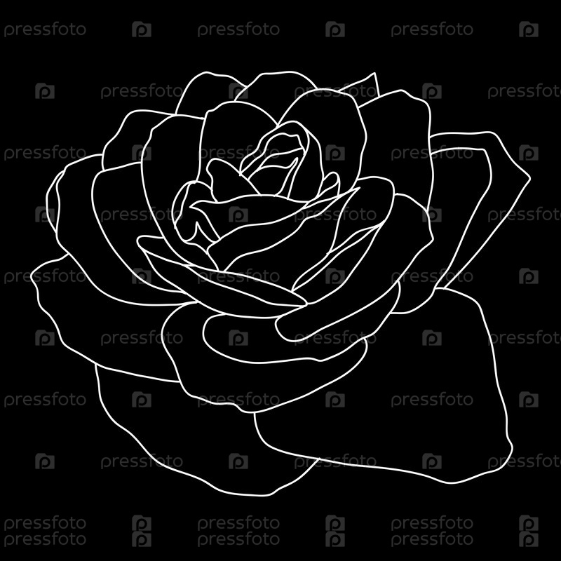 Красивый монохромный эскиз, изолированный черно-белый цветок розы