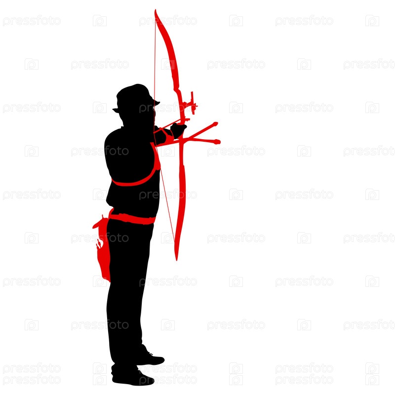 Силуэт привлекательного мужчины-лучника, сгибающего лук и целящегося в цель