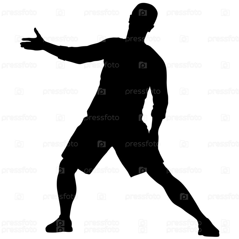 Черные силуэты человека с поднятой рукой на белом фоне