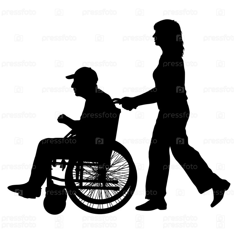 Силуэты инвалидов в инвалидной коляске на белом фоне