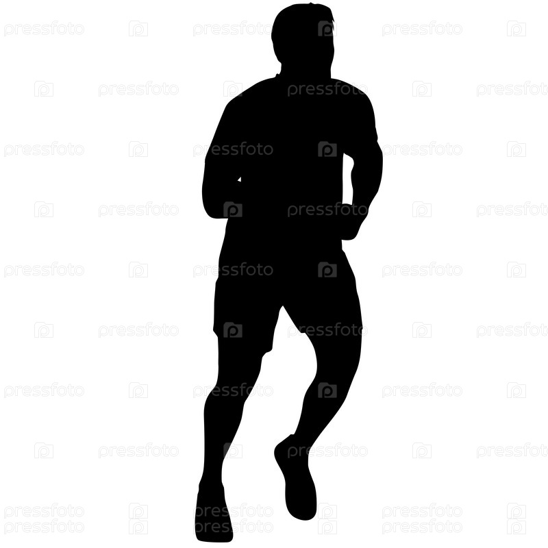 Черные силуэты бегунов на белом фоне