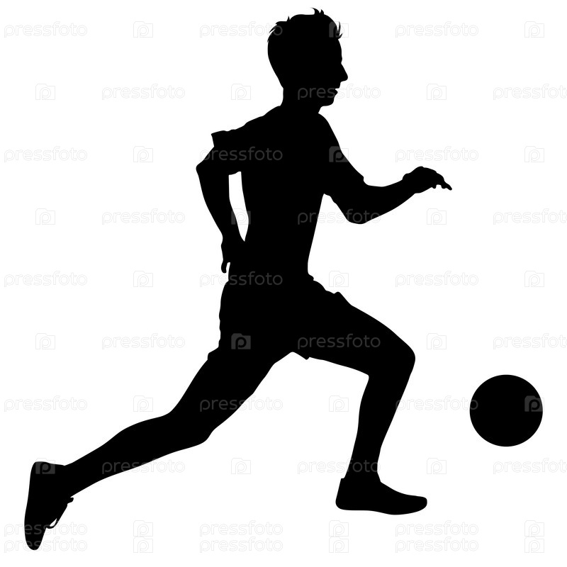 Силуэты футболистов с мячом на белом фоне