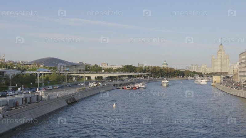 МОСКВА - 25 июня: Фрагмент плавучего моста в парке Зарядье в Москве на фоне неба 25 июня 2018 года в Москве, Россия