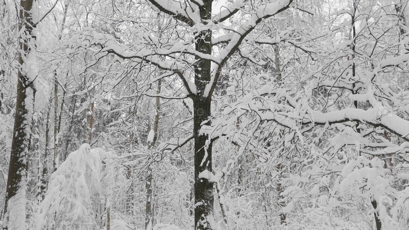 Зимний лес во время снегопада, замедленная съемка