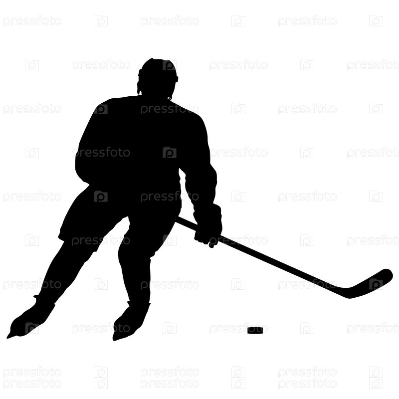 Силуэт хоккеиста. Изолированные на белом