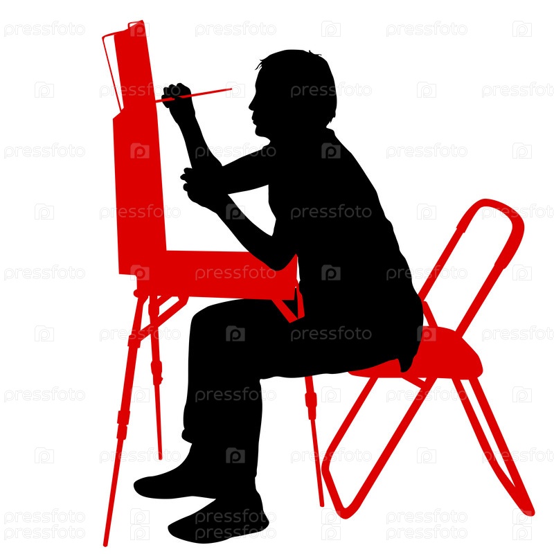 Силуэт, художник за работой на белом фоне