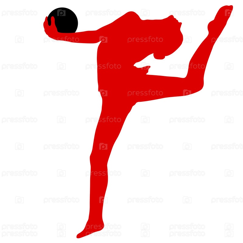 Силуэт девушки-гимнастки с мячом на белом фоне