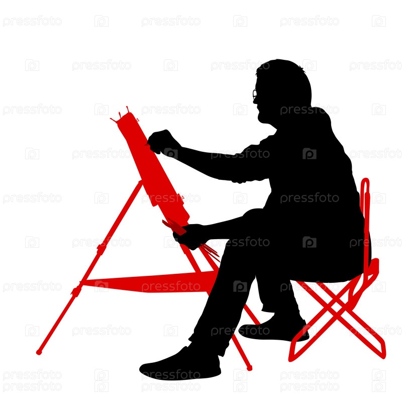 Силуэт, художник за работой на белом фоне