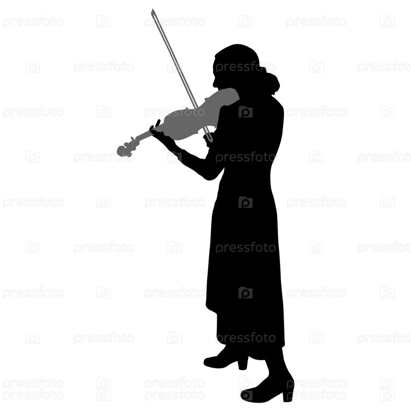 Силуэты музыканта-скрипача, играющего на скрипке на белом фоне