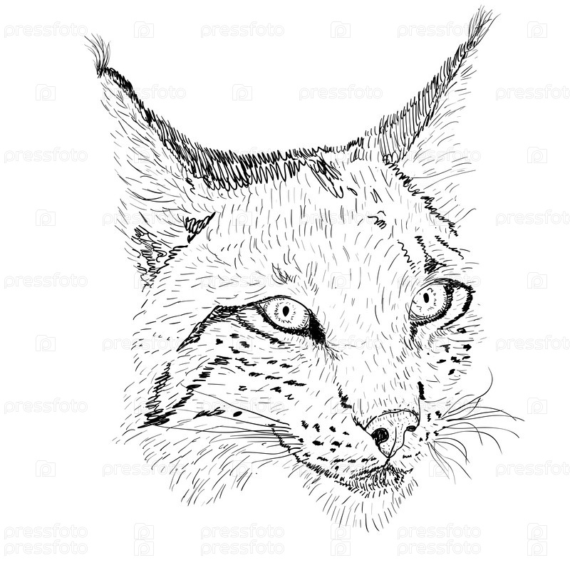 Эскиз силуэта эскиза лица рыси на белом фоне иллюстрации