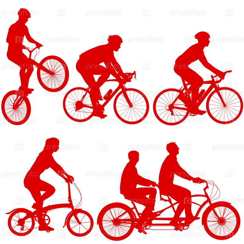 Установите силуэт велосипедиста-тандема на белом фоне