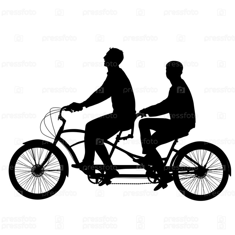 Силуэт велосипедиста-тандема на белом фоне