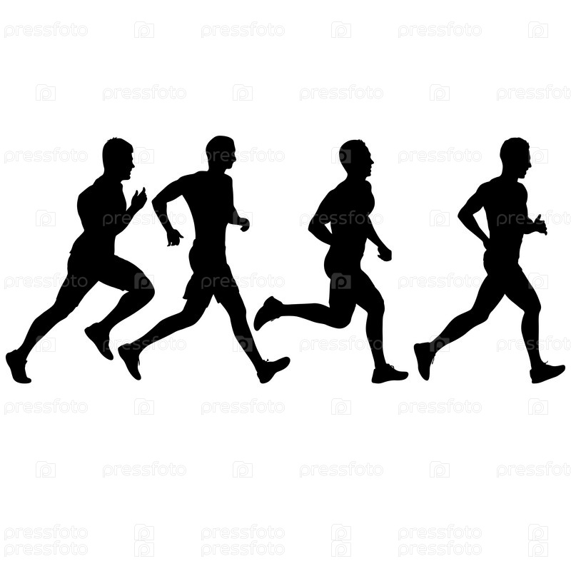 Набор силуэтов. Бегуны на спринте на белом фоне
