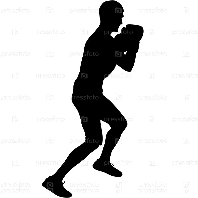 Черный силуэт спортсмена-боксера на белом фоне