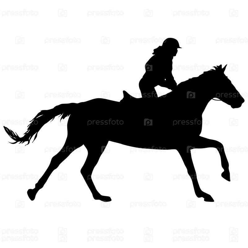 Силуэт лошади и жокея на белом фоне