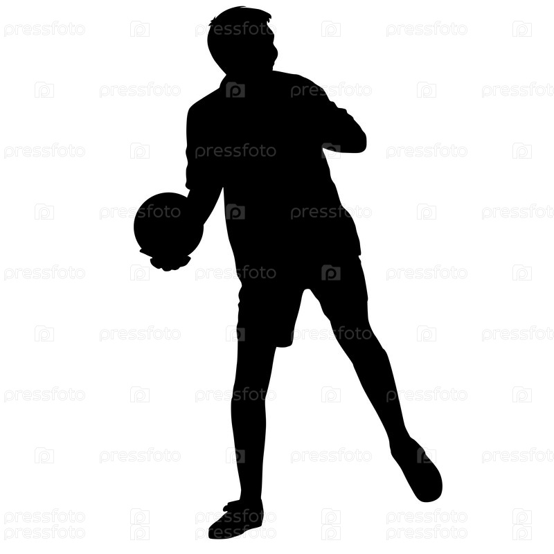 Силуэты футболистов с мячом на белом фоне