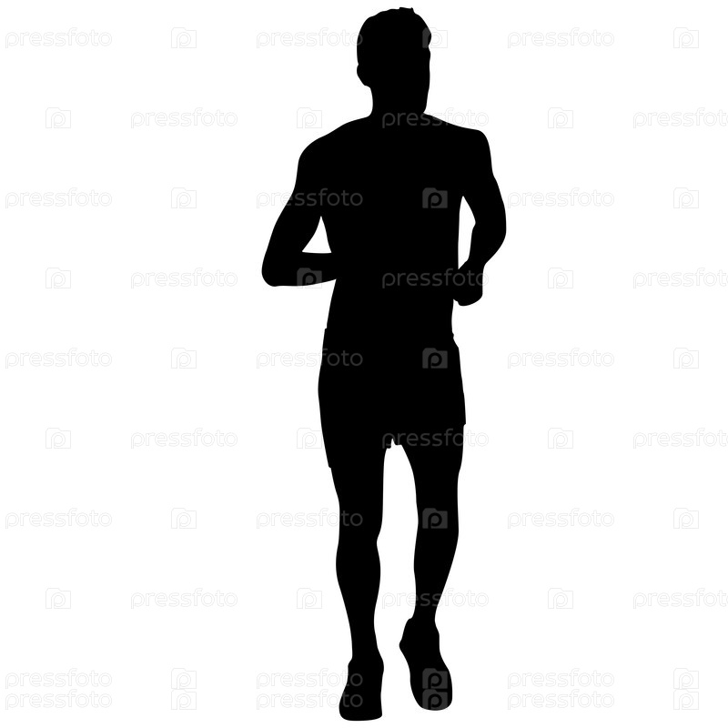 Черные силуэты бегунов на белом фоне