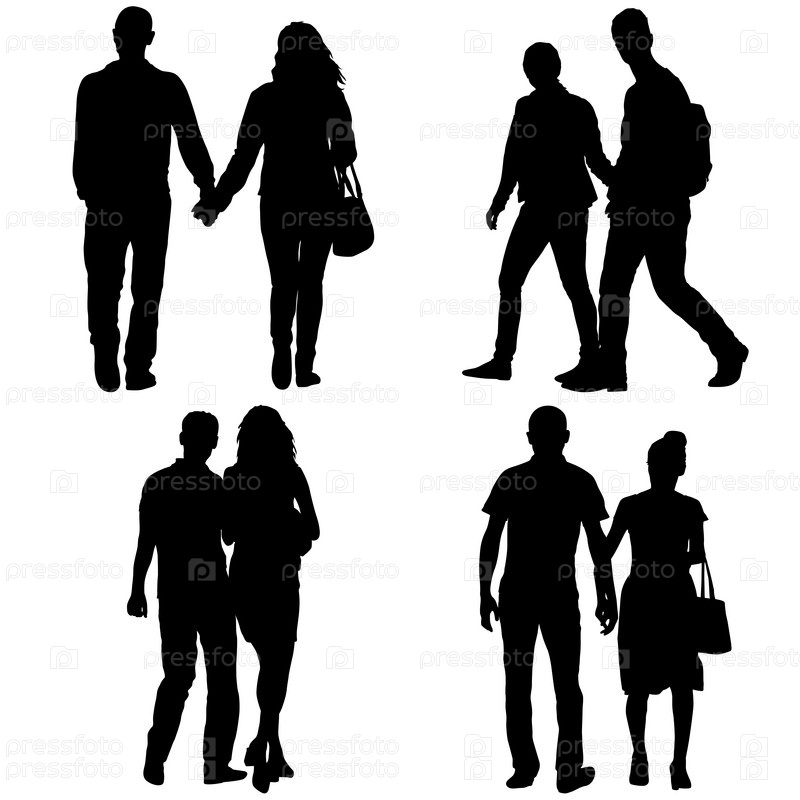 Установите силуэт мужчины и женщины, идущих рука об руку