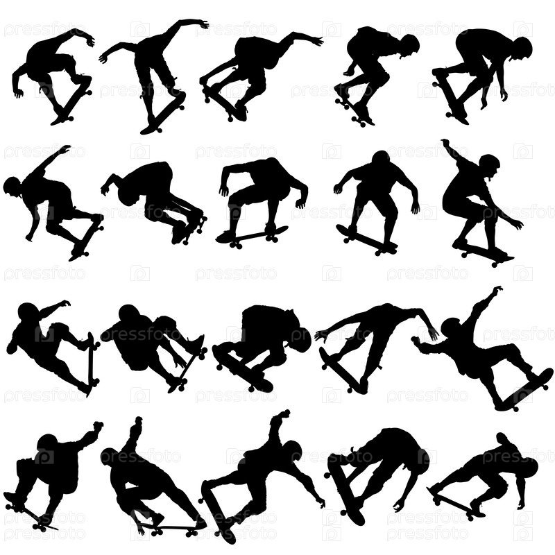 Установите силуэты скейтбордиста, выполняющего прыжки