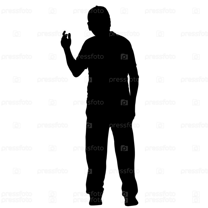 Черные силуэты человека с поднятой рукой на белом фоне