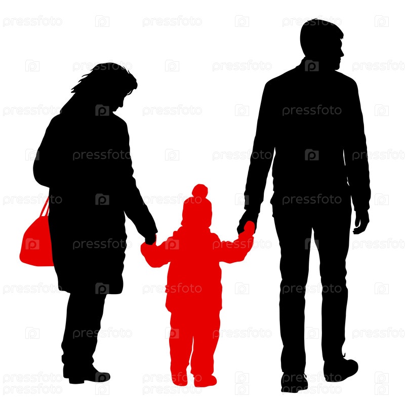 Силуэт счастливой семьи на белом фоне