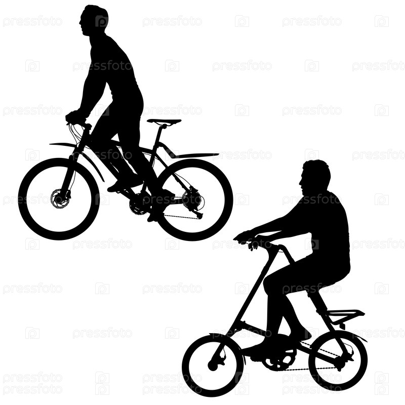 Установите силуэт мужчины-велосипедиста на белом фоне