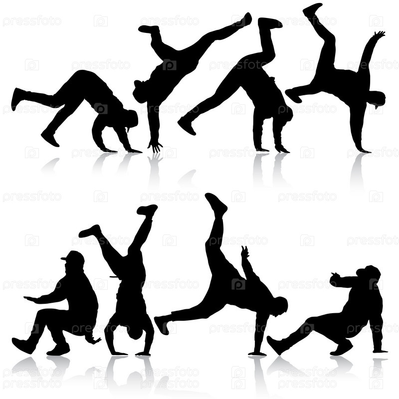 Установите черные силуэты брейкдансера на белом фоне