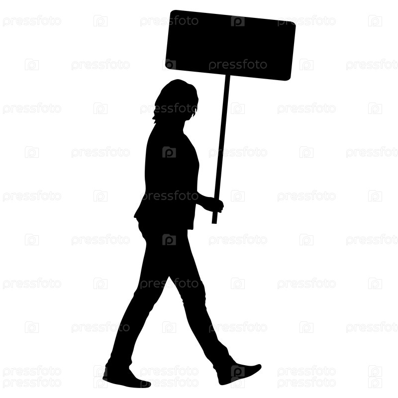 Черные силуэты женщины с баннером на белом фоне