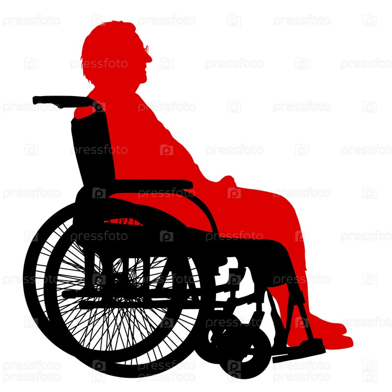 Силуэты инвалидов в инвалидной коляске на белом фоне