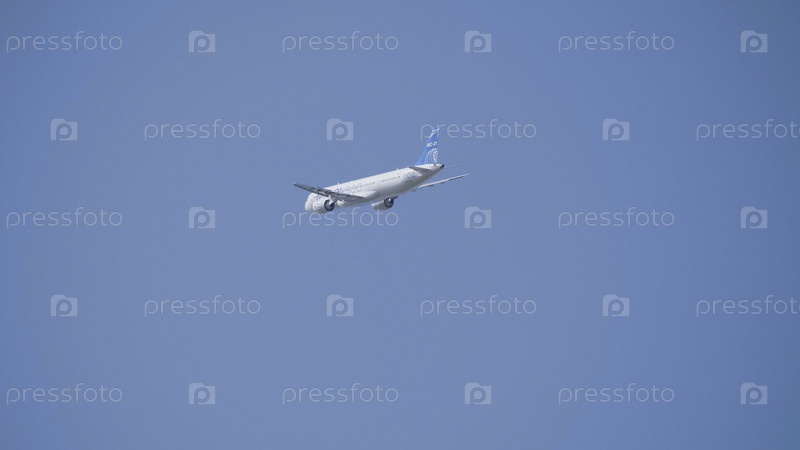 Москва, Россия, Аэродром Жуковский 31 августа 2019 года: Новый российский гражданский авиалайнер Иркут МС-21 на международном аэрокосмическом салоне МАКС-2019