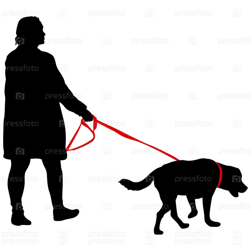 Силуэт женщины и собаки на белом фоне