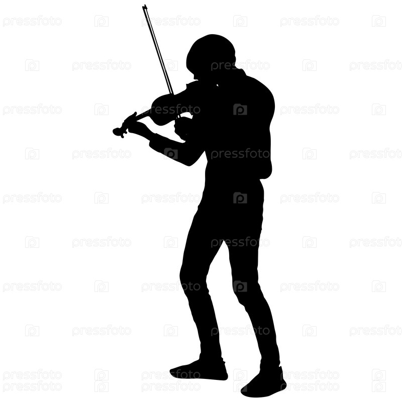 Силуэты музыканта-скрипача, играющего на скрипке на белом фоне