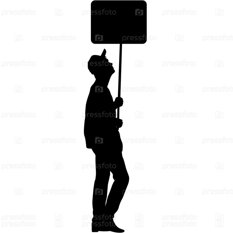 Черные силуэты женщины и мужчины с баннером на белом фоне