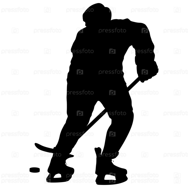 Силуэт хоккеиста на белом фоне