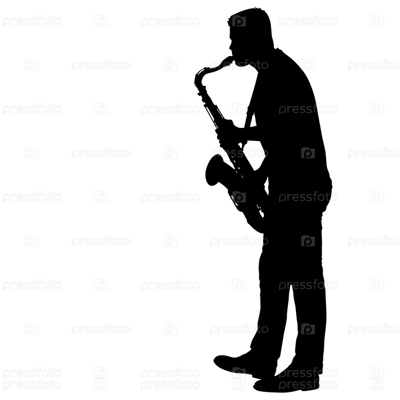 Силуэт музыканта, играющего на саксофоне на белом фоне
