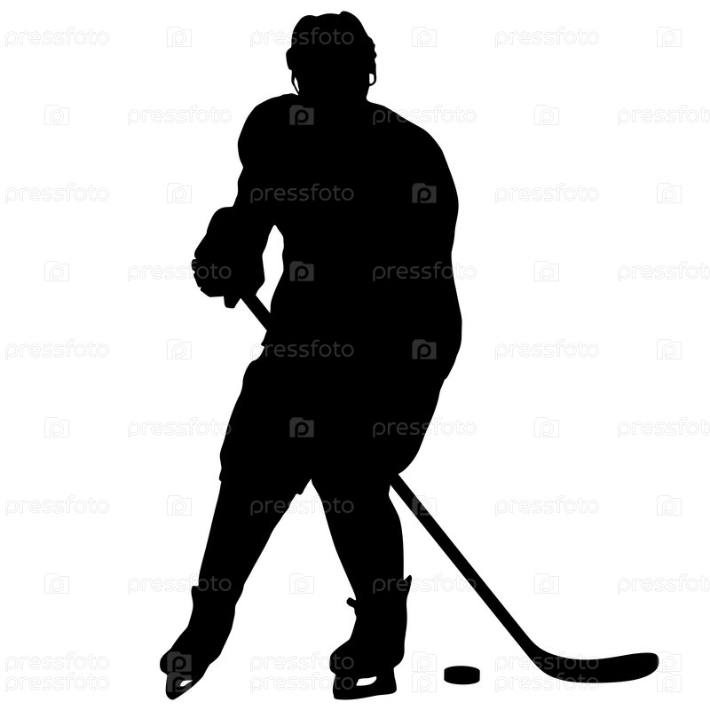 Силуэт хоккеиста на белом фоне