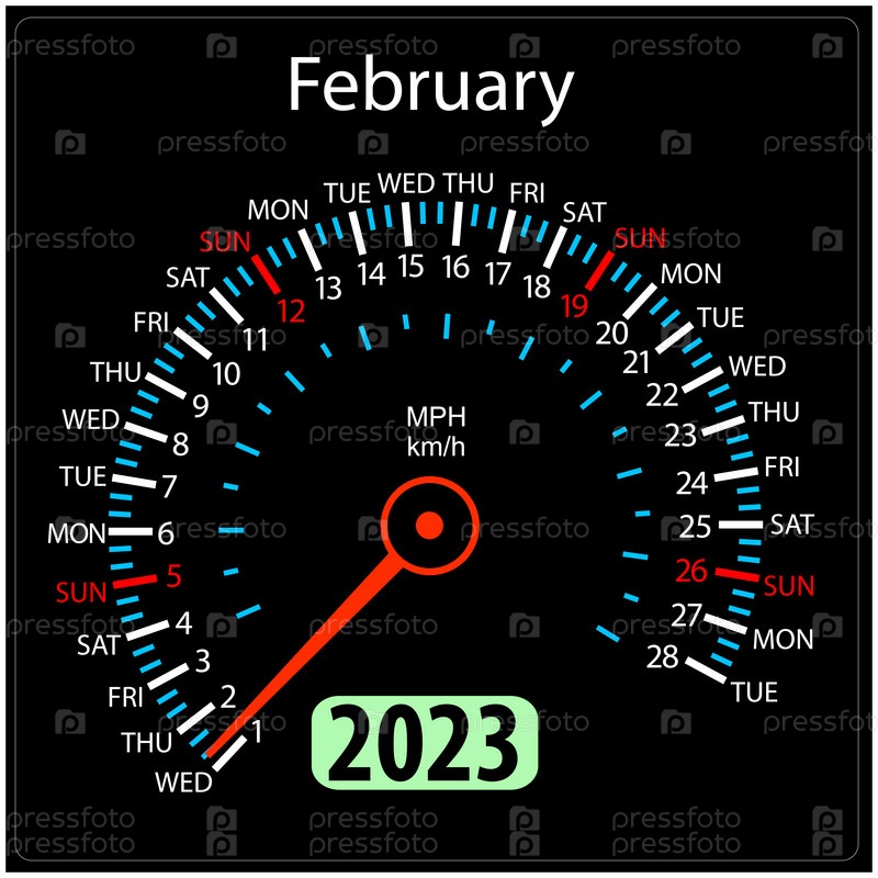 Календарь спидометра 2023 года в векторе. февраль
