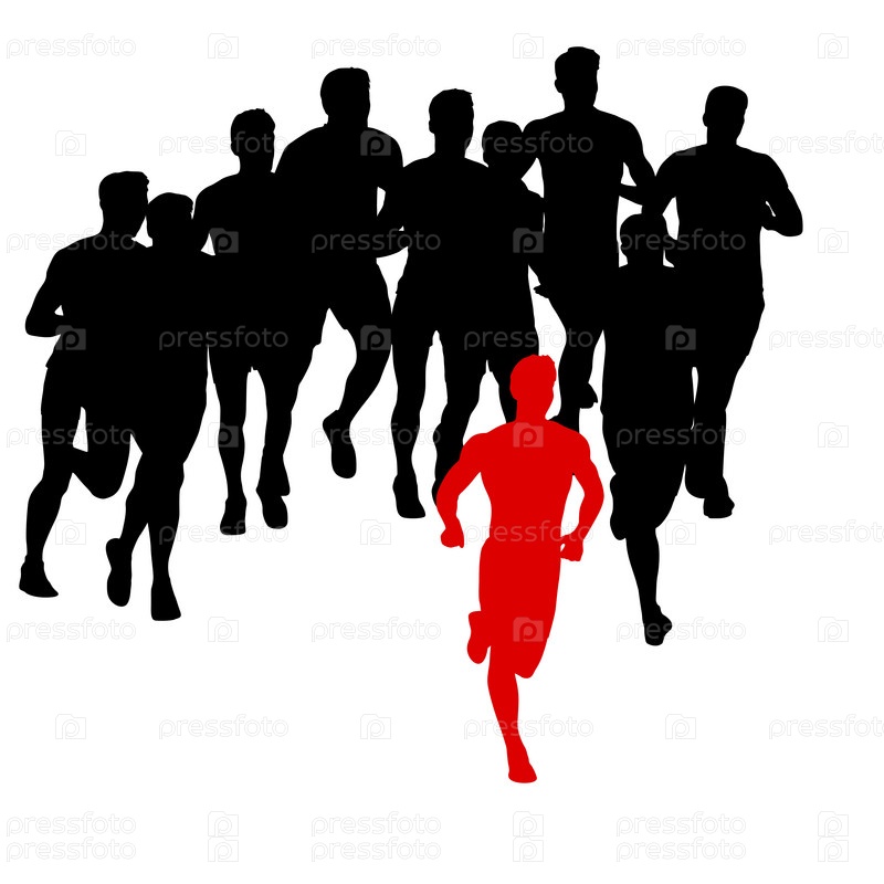 Набор силуэтов. Бегуны на спринте на белом фоне
