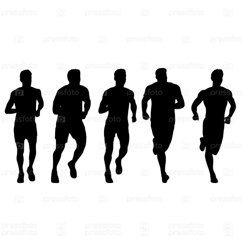 Набор силуэтов. Бегуны на спринте на белом фоне