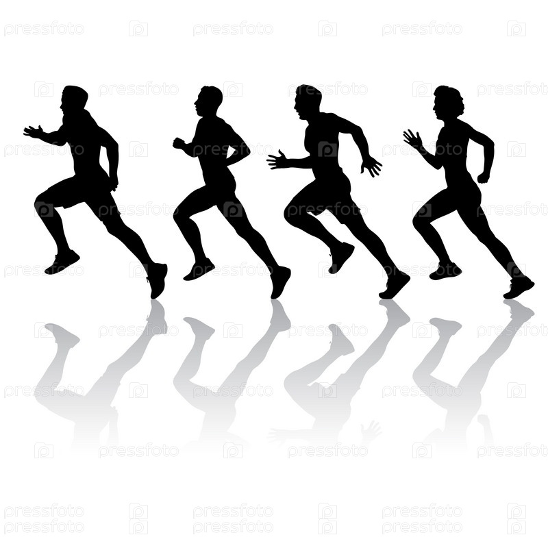 Набор силуэтов. Бегуны на спринте мужчины и женщины на белом фоне