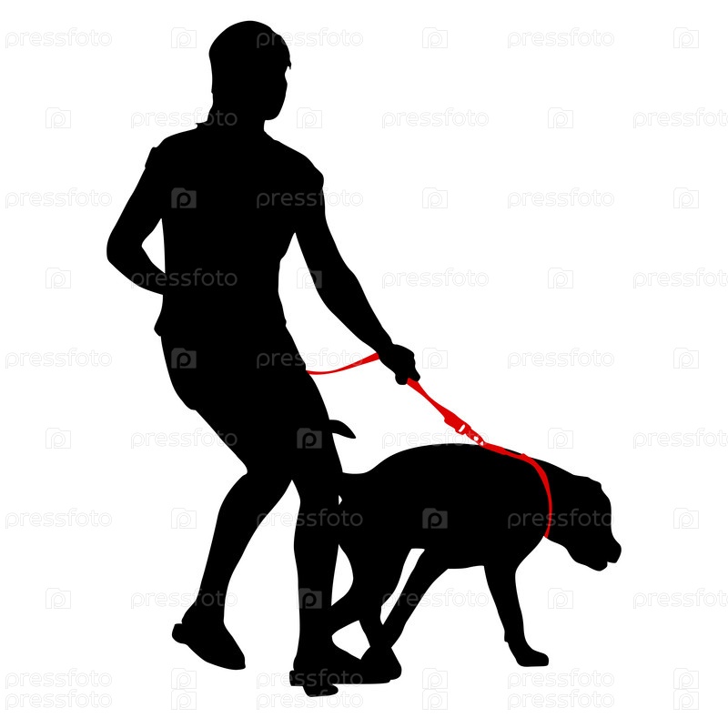 Силуэт женщины и собаки на белом фоне