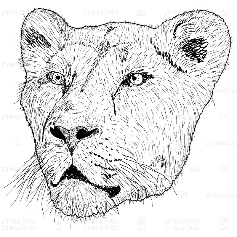 Эскиз силуэта львицы на белом фоне иллюстрации