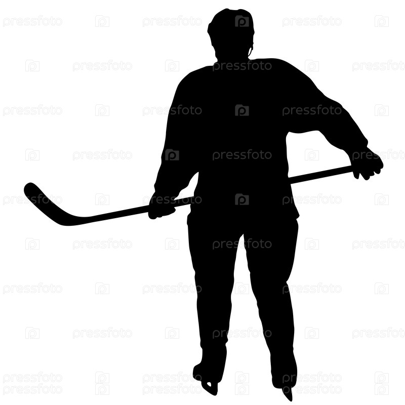 Силуэт хоккеиста на белом фоне