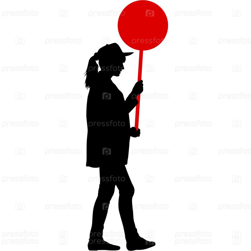 Черные силуэты женщины с баннером на белом фоне