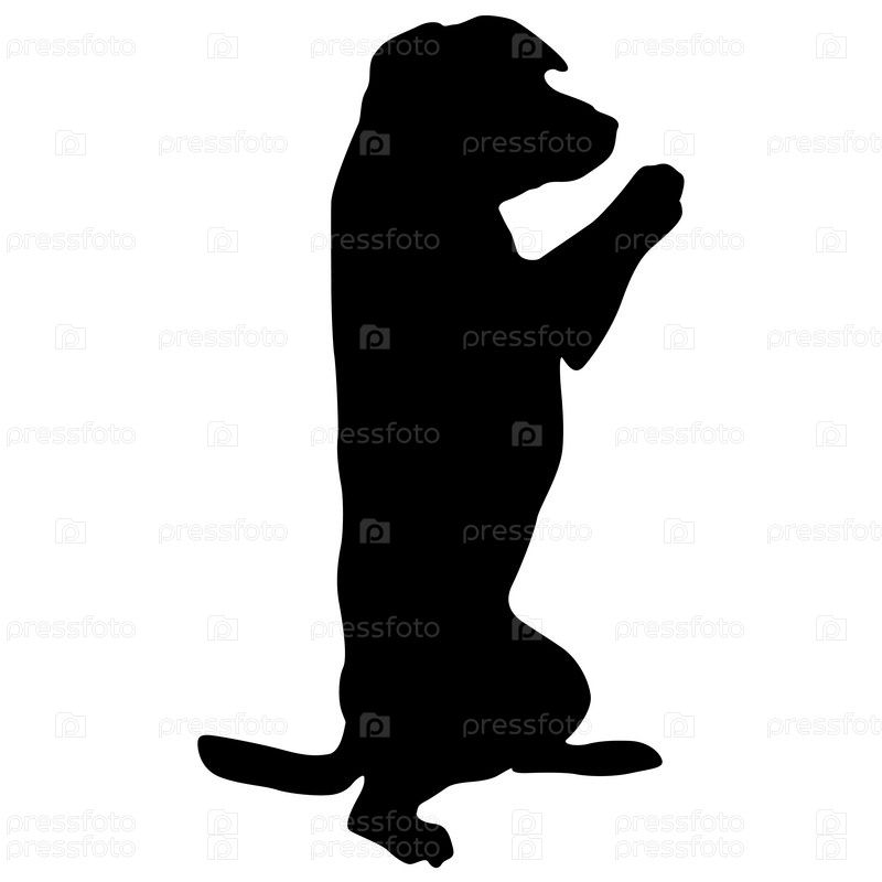 Собака сидит на задних лапах, силуэт на белом фоне