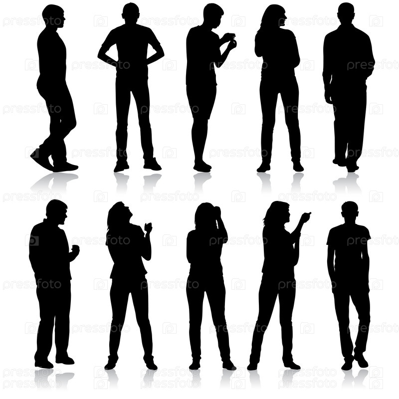 Силуэт группы людей, стоящих на белом фоне