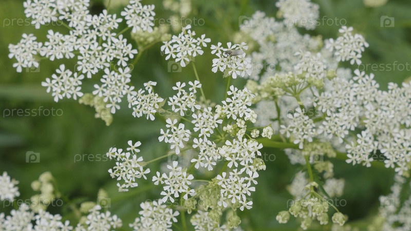 Крупный план белых люпинов, цветущих под весенним солнцем