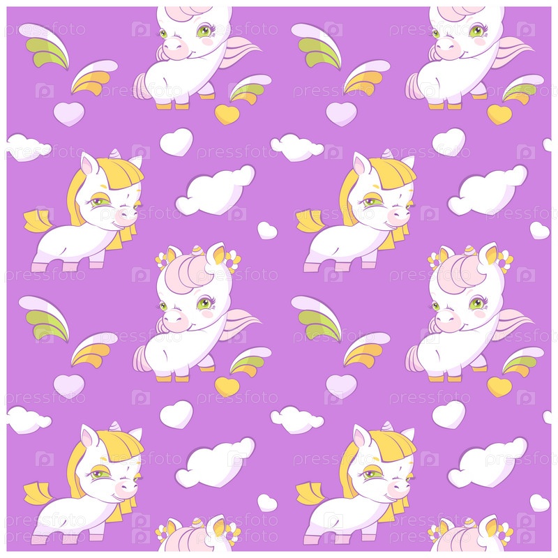 Симпатичные маленькие единороги лавандово-фиолетового цвета бесшовный узор