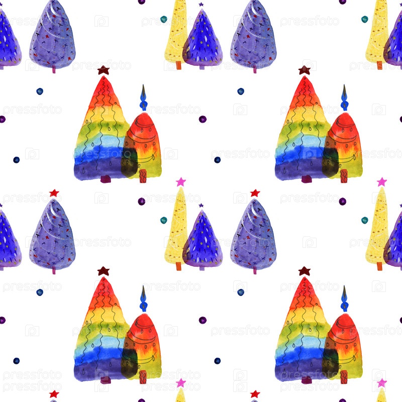 Рождественская елка милая яркая акварель бесшовный узор