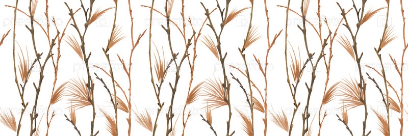 Ботаническая акварель. Золото и ветки. Деревянный бесшовный узор для рождественского текстиля и веб-дизайна
